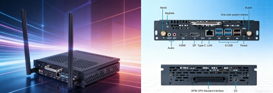 DP 双显示接口,支持4K@60Hz 高清输出,投屏演示清晰细腻,色彩还原真实;千兆网络接口(RTL8111H)保障网络传输稳定,视频会议画面流畅无卡顿,USB 接口可快速读取 U 盘资料、连接外设,让会议协同更高效,契合 OPS 简化布线、多设备兼容的特点。