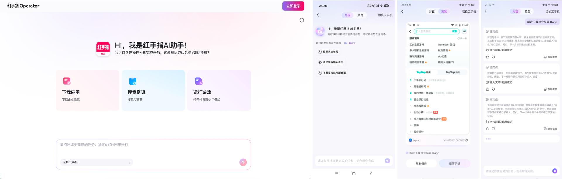 据了解,红手指Operator是将AI大模型的决策能力与云手机提供的安全隔离、精准执行环境深度融合,能够支持理解用户意图、智能拆解和编排工作流,而且支持跨应用完成复杂协作任务。