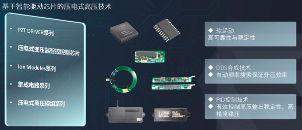 相较传统电磁绕组式高压发生器,智控驱动芯片压电式高压技术具备高安全、高性能、高精度、低电磁、可变输出入的特性,同时实现片式化、小型化、集成化,通信、航空、军工、医疗、电器、电子产品、精密仪器等诸多领域均可广泛应用。