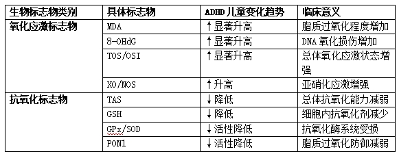 1、ADHD儿童的氧化应激生物标志物变化模式