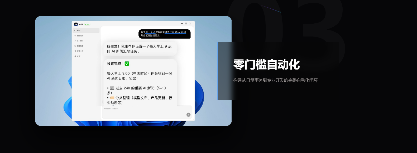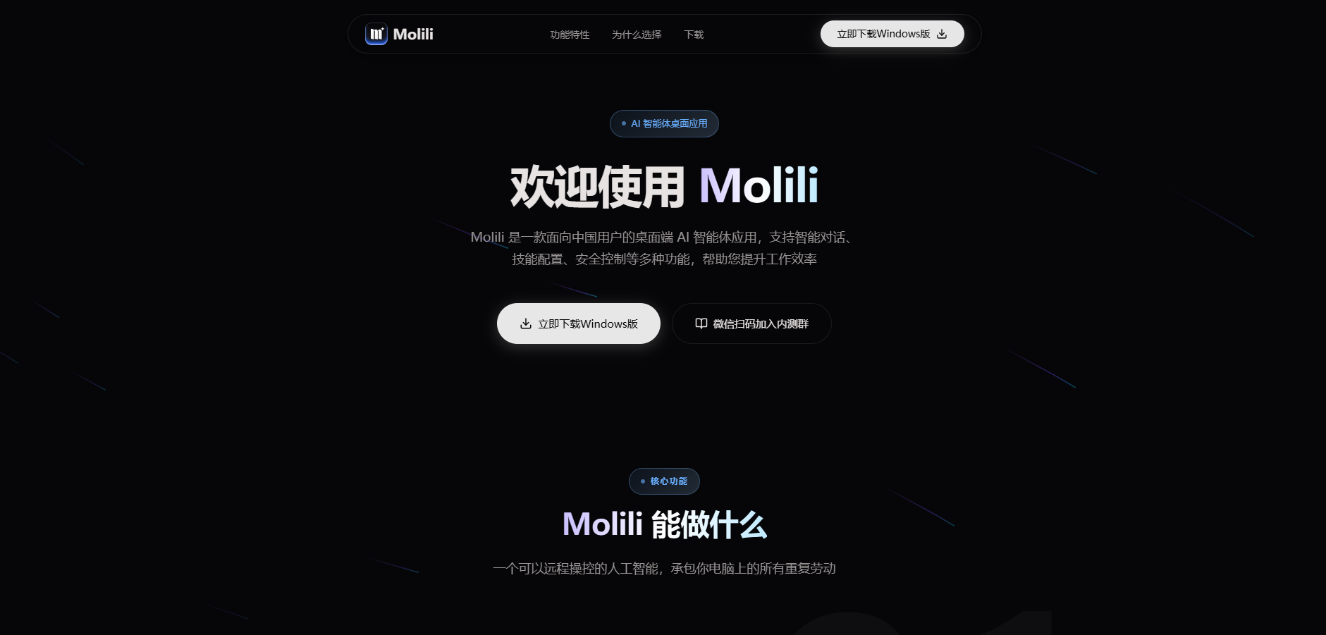 简单来说,以往的AI助手最多帮你写段文案,而Molili能直接帮你把活儿干了——比如自动整理桌面文件、发送邮件、甚至跨软件搬运数据。官方将其定位为“7×24小时不下班的AI数字员工”。