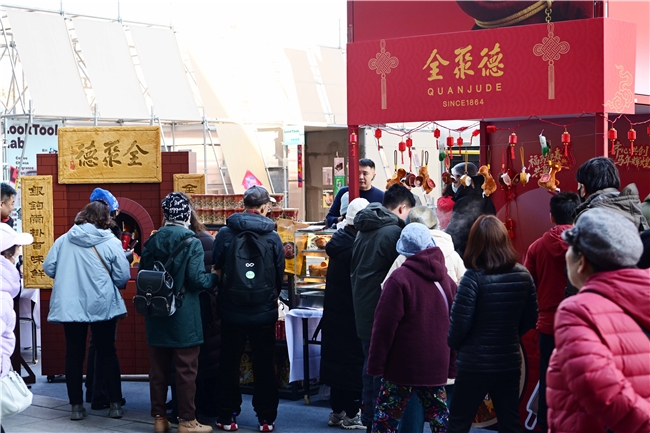与此同时,全聚德、仿膳、四川饭店的众多经典美味也亮相隆福寺、厂甸、陶然亭等知名庙会市集,以醇厚老味道点亮京城新春烟火气。据悉,全聚德首次进驻隆福寺新春市集成为今年春节的一大亮点,和平门店、王府井店等积极参与市集活动,推出霸气烤鸭串、鸭杂酸辣粉、文创周边等年轻化产品,精准触达年轻消费群体,现场人气高涨,成为年味打卡新热点,带动展位销售业绩与口碑双丰收,拓宽品牌触达面。