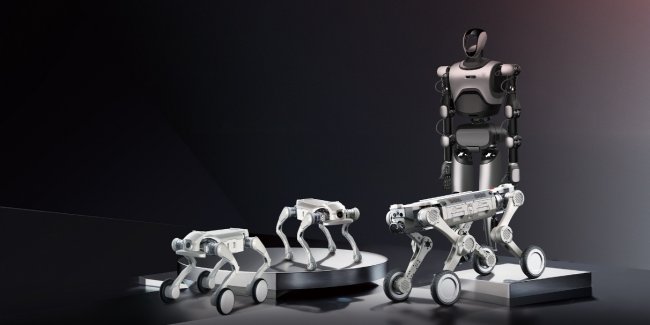 本届展会上,智身科技将带来多款专为特种和行业应用打造的硬核产品。仿生四足机器人“钢镚ZSL-1”,搭载AI强化学习运控算法,是同类中唯一能实现“720°后空翻”特技的产品,最高速度3.7m/s,支持40°爬坡与IP54防护,堪称“最抗造”的机器狗。其轮足版本ZSL-1W则兼具5m/s高速巡航与低噪音优势,适用于安防、巡检、导盲等多场景智能移动任务。此外,高端轮足一体化产品“铜锤M1”以1:1的极致负载自重比(自重30kg/负载30kg)惊艳亮相,具备8m/s奔跑速度与80cm越障能力,是户外复杂作业场景当之无愧的“全能选手”。