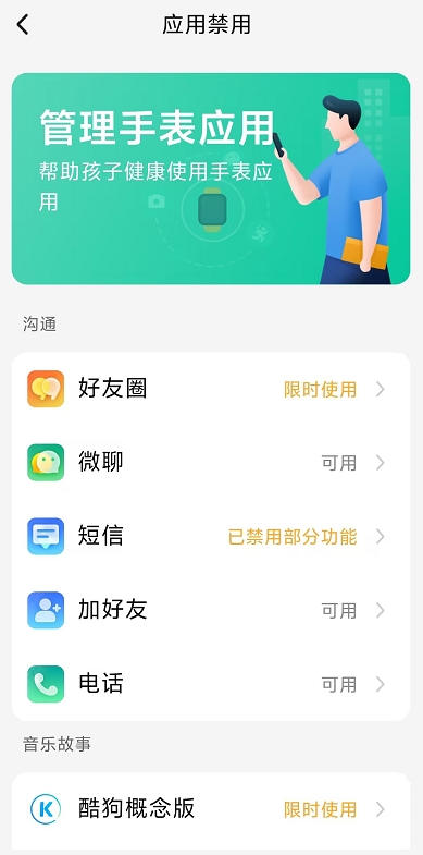 按年龄与学习需求,自由开关手表内各应用权限,过滤不合适内容,让电话手表真正服务于孩子健康成长。