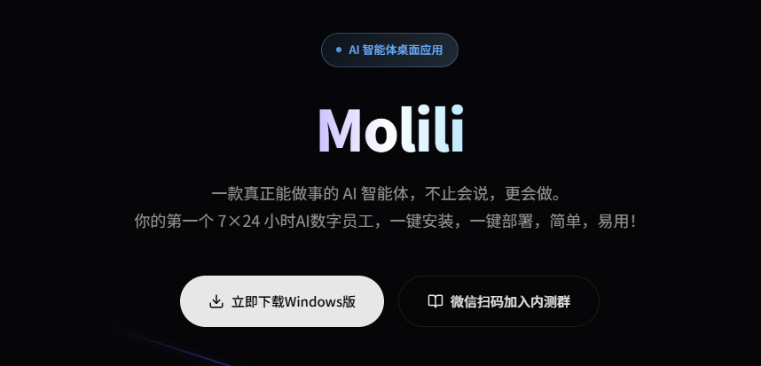 此前,OpenClaw的爆火将AI从"能聊天"推向"能办事"的新阶段,国内市场随之涌现出多款中文适配版本,Molili正是其中的代表性产品之一。