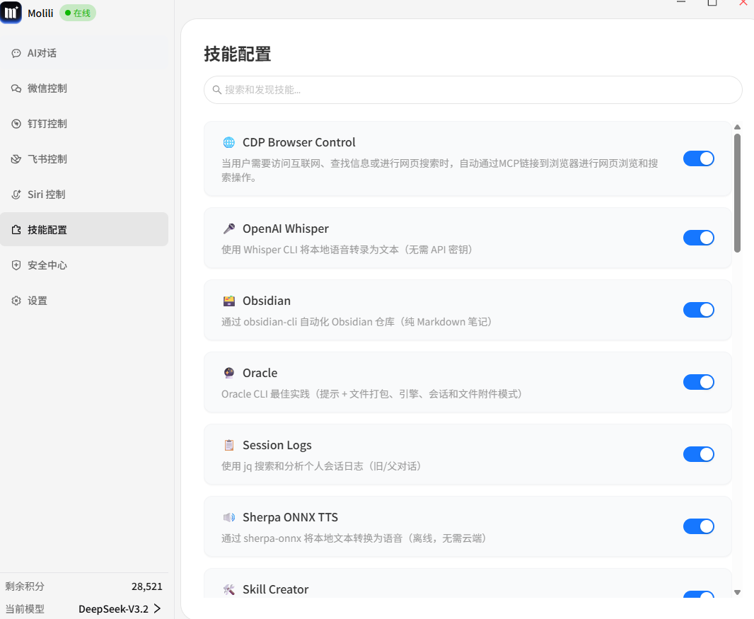 针对用户关心的Agent自动操作风险,Molili采用了严格的“本地优先”策略。系统默认在沙盒环境下的指定文件夹内运行,防止误操作破坏系统文件;同时支持数据本地化处理,杜绝云端泄漏风险。在模型支持上,Molili既预置了主流大模型API,也支持通过调用本地开源模型,用户可根据任务对隐私和性能的需求灵活切换,确保数据安全与隐私保护。
