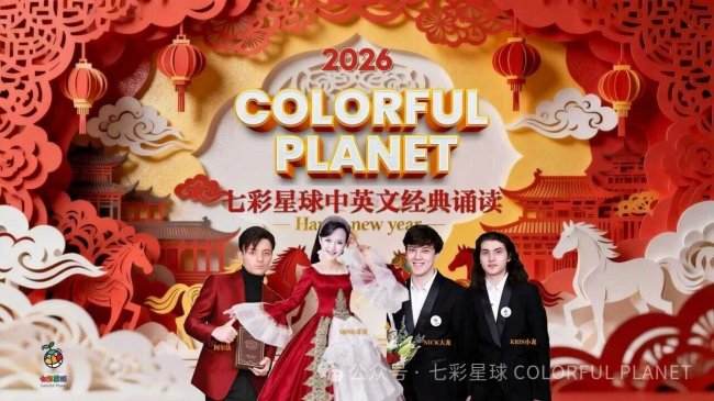 七彩星球贺新年 中国教育形象大使 双语主播青青姐姐管青大龙牟桥阿尔法领衔2026贺岁 骏马腾飞 中英文经典诵读中国文化走向世界美誉天下