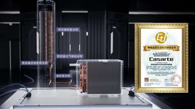品质认证:卡萨帝空调全系柜挂空调内外机冷媒流经管路及17个核心零部件,符合国际铜业协会铜佳品质生标识的相关要求,为用户提供更耐用的品质保障。