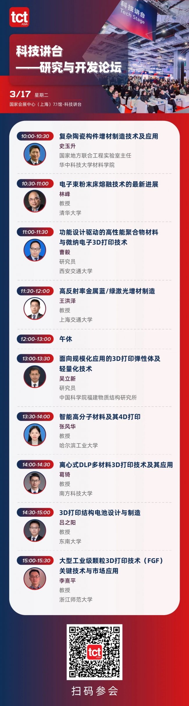 ✔ 技术前沿密度极高✔ 顶尖科研与产业力量同台✔ 从基础研究到产业化应用全链路呈现✔ AI与增材制造深度融合专题