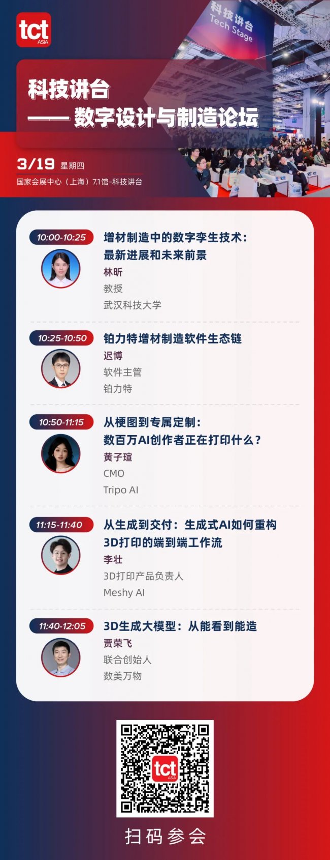 数字设计与制造论坛(3月19日):AI时代的降维打击。当3D打印遇上AI,效率将不再是瓶颈。论坛现场,来自武汉科技大学的林昕教授将揭秘如何通过数字孪生技术,在虚拟世界中实时预测与优化打印质量。
