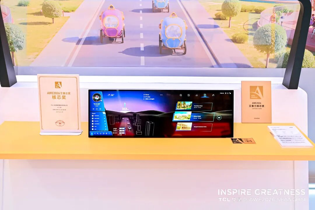 TCL华星凭借对消费者场景的深刻洞察与极致的显示技术打磨,在AWE2026上赢得了行业的权威认可。旗下超薄窄边框Mini-LED车载显示(29.8")与全球最薄LCD桌面显示(27")两款产品荣获“AWE2026艾普兰核芯奖”,充分印证TCL华星以核心技术驱动显示体验升级的创新实力,持续引领行业技术方向与用户体验升级。