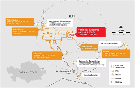 上乌巴铜矿项目位于哈萨克斯坦东哈萨克斯坦州鲁德内阿尔泰(Rudny Altai)成矿区。根据JORC合规标准,该项目矿石资源量达2030万吨,铜品位高达1.16%,伴生锌品位1.54%、铅品位0.27%。按铜当量计算,综合品位超过1.4%,属于高品位优质矿产资产。