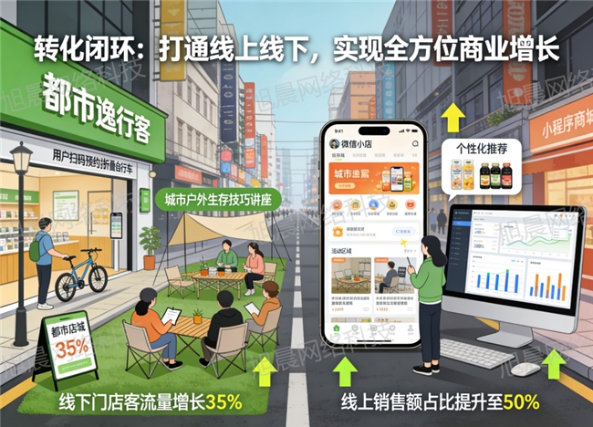 为实现从流量到销售的转化闭环,旭晨网络科技助力 “都市逸行客” 打通线上线下渠道,构建全渠道营销体系。线上,小程序商城与微信小店紧密结合,用户在浏览公众号文章或小程序内容时,可一键跳转至微信小店完成购买,操作便捷流畅。利用微信小店数据分析功能,精准把握用户需求与购买行为,针对喜欢露营的用户推荐新款露营帐篷与防潮垫组合,针对骑行爱好者推荐专业骑行服与头盔,提高转化率与客单价。