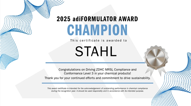 全球柔性材料特种涂料领域的领先企业之一斯塔尔(Stahl)近日宣布,再度斩获阿迪达斯 2025 年度 adiFORMULATOR 奖项。这一荣誉充分彰显了斯塔尔在推动皮革涂饰与高性能涂料产品组合迈向更安全、更负责任的配方的持续领导力。