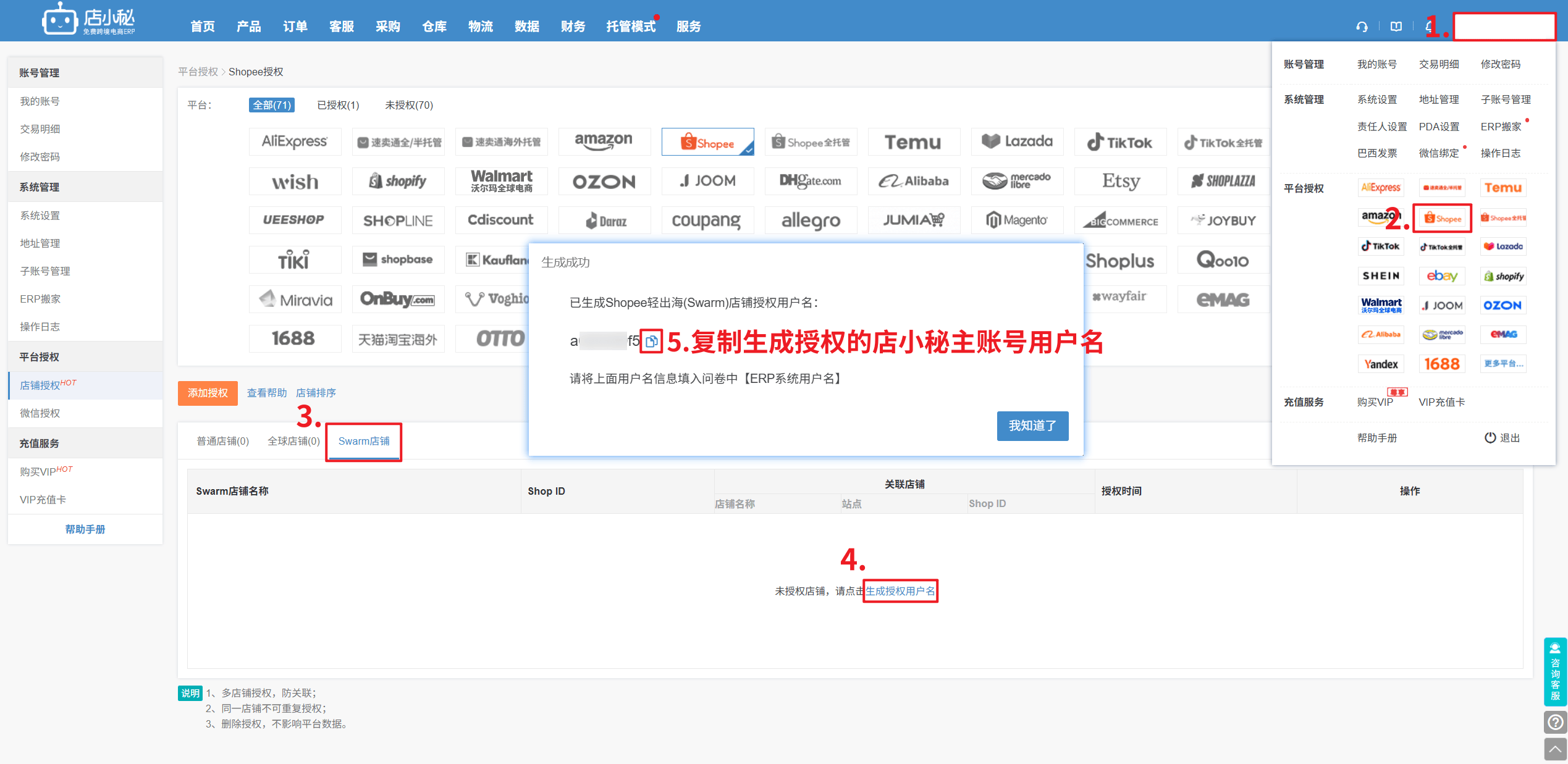 已使用店小秘ERP的用户生成授权用户名路径1.2 Shopee轻出海热招类目