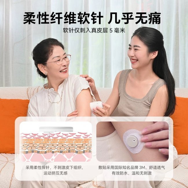 监测实用性:一次佩戴可连续14天监测,数据精准稳定,免校准设计省心省力,远程数据分享功能,让子女随时掌握家中老人血糖状况。
