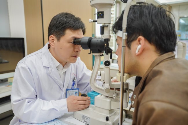 东南眼科医院林晓冬主任为近视青年做检查(资料图)