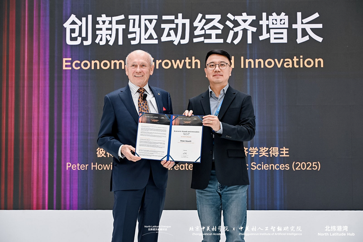 2026年3月24日,由北纬港湾(北京)科技发展有限公司与北京中关村学院、中关村人工智能研究院联合主办的首届北纬诺贝巅峰对话圆满落幕。本次活动特邀2025年诺贝尔经济学奖得主、加拿大经济学家彼得·豪伊特(Peter Howitt)教授出席、与中关村两院师生围绕人工智能与经济增长的核心议题展开深度对话。