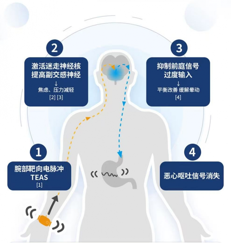 不同于传统防晕产品的被动缓解,舒乐定防晕车手环采用靶向神经调节技术,通过低频脉冲刺激正中神经,阻断大脑向胃部发送呕吐信号,从根源上缓解胃部异常蠕动,有效改善头晕、恶心等晕车症状,完美适配自动驾驶场景下的晕车困扰。