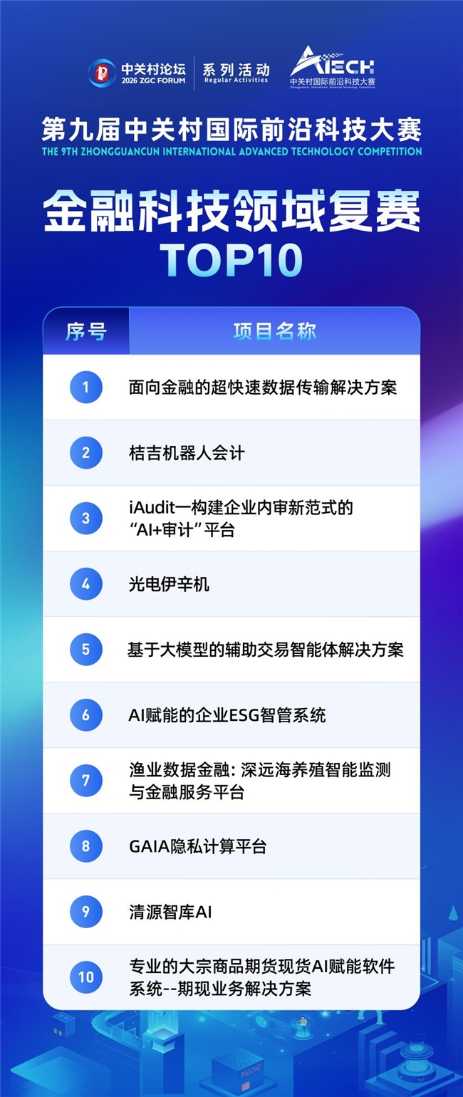 2026 年 3 月 25 日,北京中关村国际技术交易中心星光璀璨,第九届中关村国际前沿科技大赛「前沿之夜」颁奖盛典圆满落幕。北京清源创研科技有限公司凭借在金融科技领域的突破性成果与硬核实力,【清源智库AI】产品从全球千余个参赛项目中脱颖而出,成功入选金融科技领域TOP10,成为本届大赛中闪耀的科创力量之一。