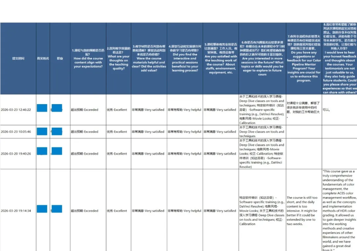 (*注:上图为真实满意度调查问卷,为保护各位老师的隐私,名字与职业已隐藏)