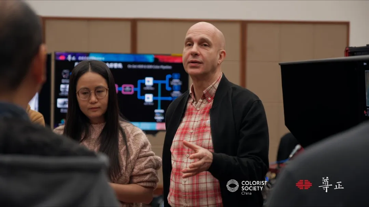 这次交流的重要嘉宾是国际调色师协会(CSI)主席 Kevin Shaw。作为行业内的权威专家,Kevin 凭借丰富经验,从胶片拍摄、洗印等流程,到如今 SDR、HDR 的转变发展,与中影(北京)电影制片厂的老师们交流高格式色彩管理全流程,助力一线工作者提升影视制作技术。