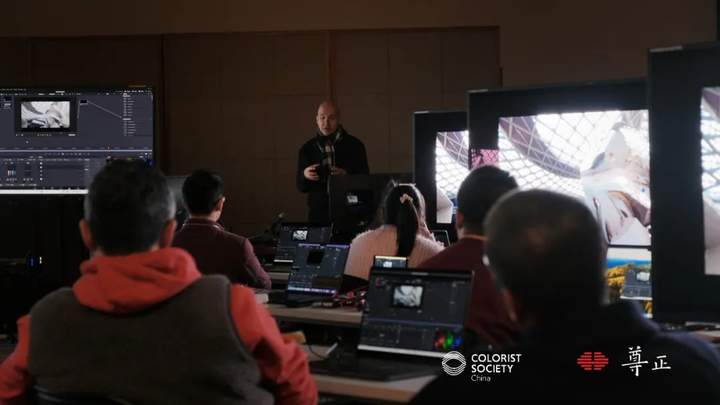 高格式全流程色彩管理交流现场 2026年3月,尊正联合国际调色师协会(CSI)与中影(北京)电影制片厂开展了「高格式全流程色彩管理交流活动」。这次交流除了技术上的探讨,更多是一场从理论到实践的深度学习体验。