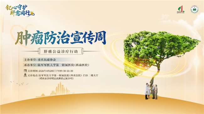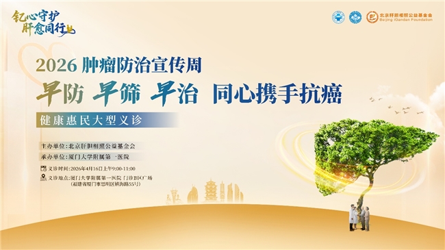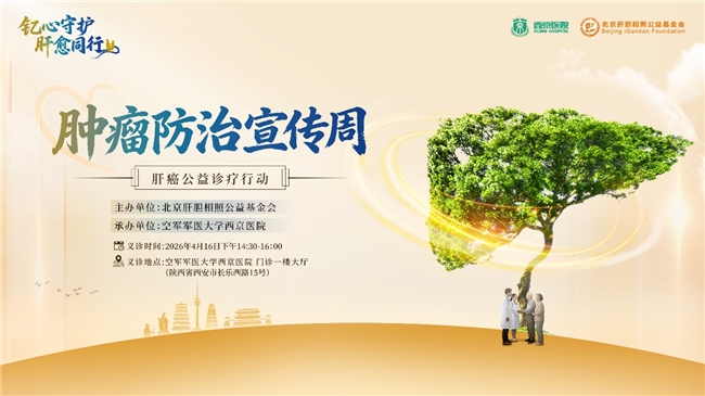 2026年4月15日—21日是第32个全国肿瘤防治宣传周,今年活动主题为 “早防早筛早治 同心携手抗癌”。为贯彻健康中国战略部署,落实《健康中国行动(2019—2030 年)》《癌症防治行动实施方案(2023—2030 年)》要求,强化癌症防治关口前移、普及规范诊疗知识,由北京肝胆相照公益基金会主办的“钇心守护・肝愈同行”全国肝癌公益诊疗行动,将于宣传周期间在杭州、厦门、西安、广州、重庆、郑州六城同步开展。