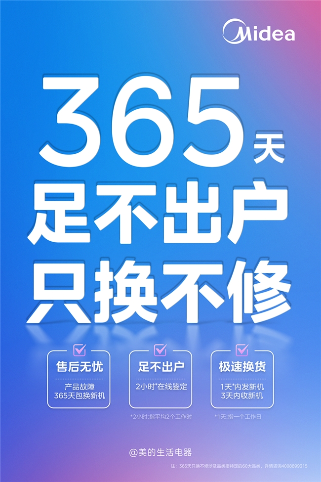 在家电行业从“产品驱动”向“服务驱动”转型的当下,售后服务政策已成为消费者选择品牌的重要考量。美的售后服务秉持“快速、专业、贴心”的服务心智,在小家电领域推出的“365天只换不修”政策,自2021年率先推出“以换代修”并于2025年升级以来,赢得了市场的广泛认可。本文将从政策内容、用户体验、服务网络等维度,对美的小家电“365天只换不修”政策进行深度解读。
