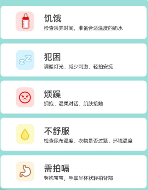 该产品综合运用统计分析、机器学习和深度学习等前沿技术,对新生儿的啼哭声、脑电图、近红外光谱、面部表情以及身体动作等多模态数据进行深度研究分析。同通过算法不断优化,能够精准识别并翻译出新生儿饥饿、犯困、烦躁、需拍嗝、不舒服五种常见哭声类型,并根据宝宝的具体需求推送科学合理的安抚建议。