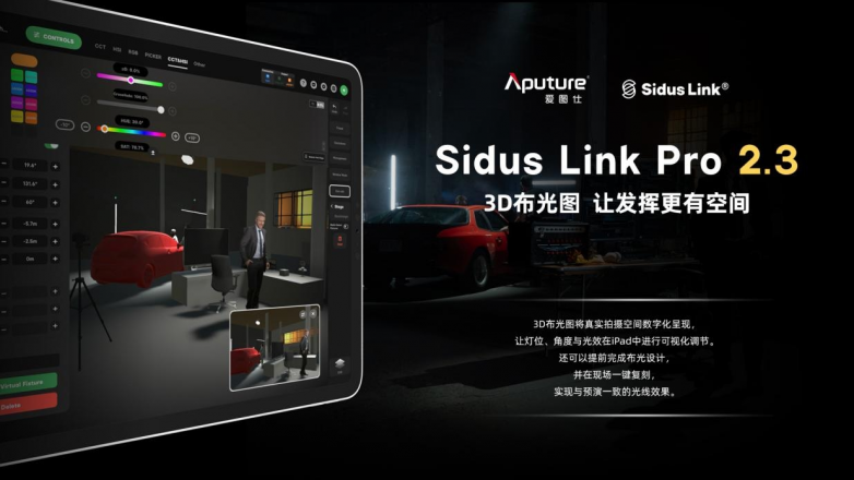 4月15日,爱图仕(Aputure)今日正式推出 Sidus Link Pro 2.3。作为专业灯光控制应用的旗舰级更新,这款 iPad 软件首次将 3D 布光图与灯光控制整合在同一个工作流中。
