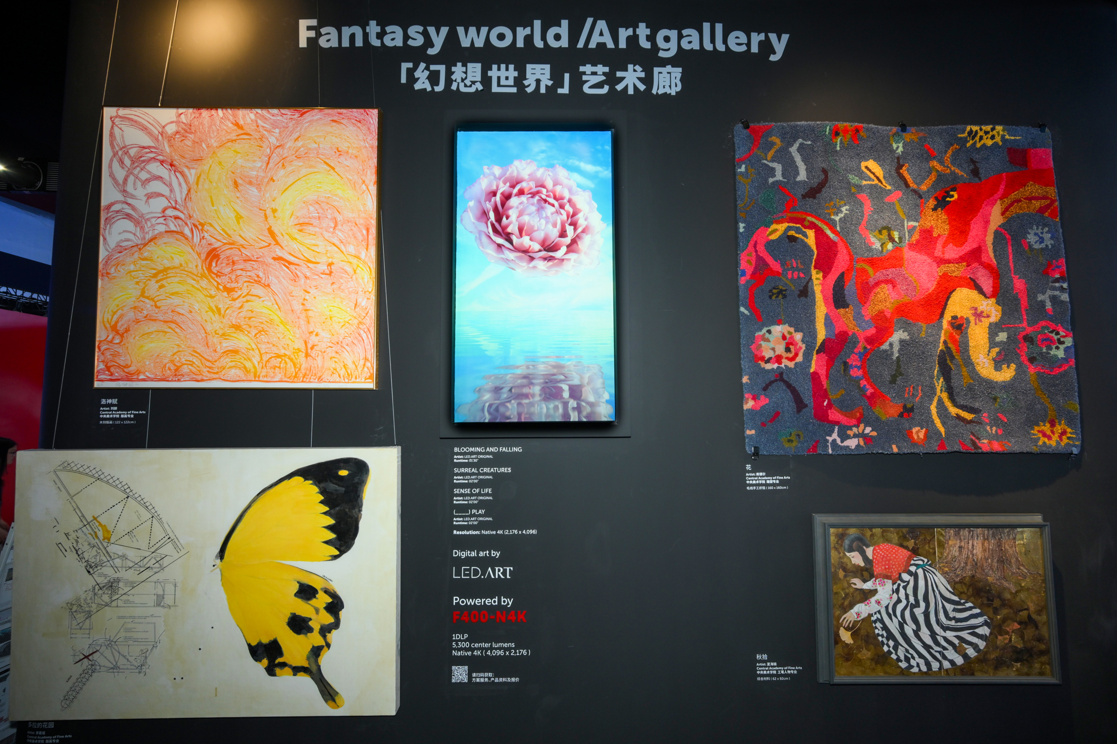 关于细分市场应用,巴可专门在展区内打造了「幻想世界」艺术廊,为观众带来d'strict 的数字艺术作品《Forest》以及与美院合作的艺术创作。在国内外的艺术创意品牌与青年艺术家支持下,巴可不只呈现出先进投影技术在数字艺术展览领域的应用,更让观众漫步于绚丽色彩与细腻笔触的艺术之境。