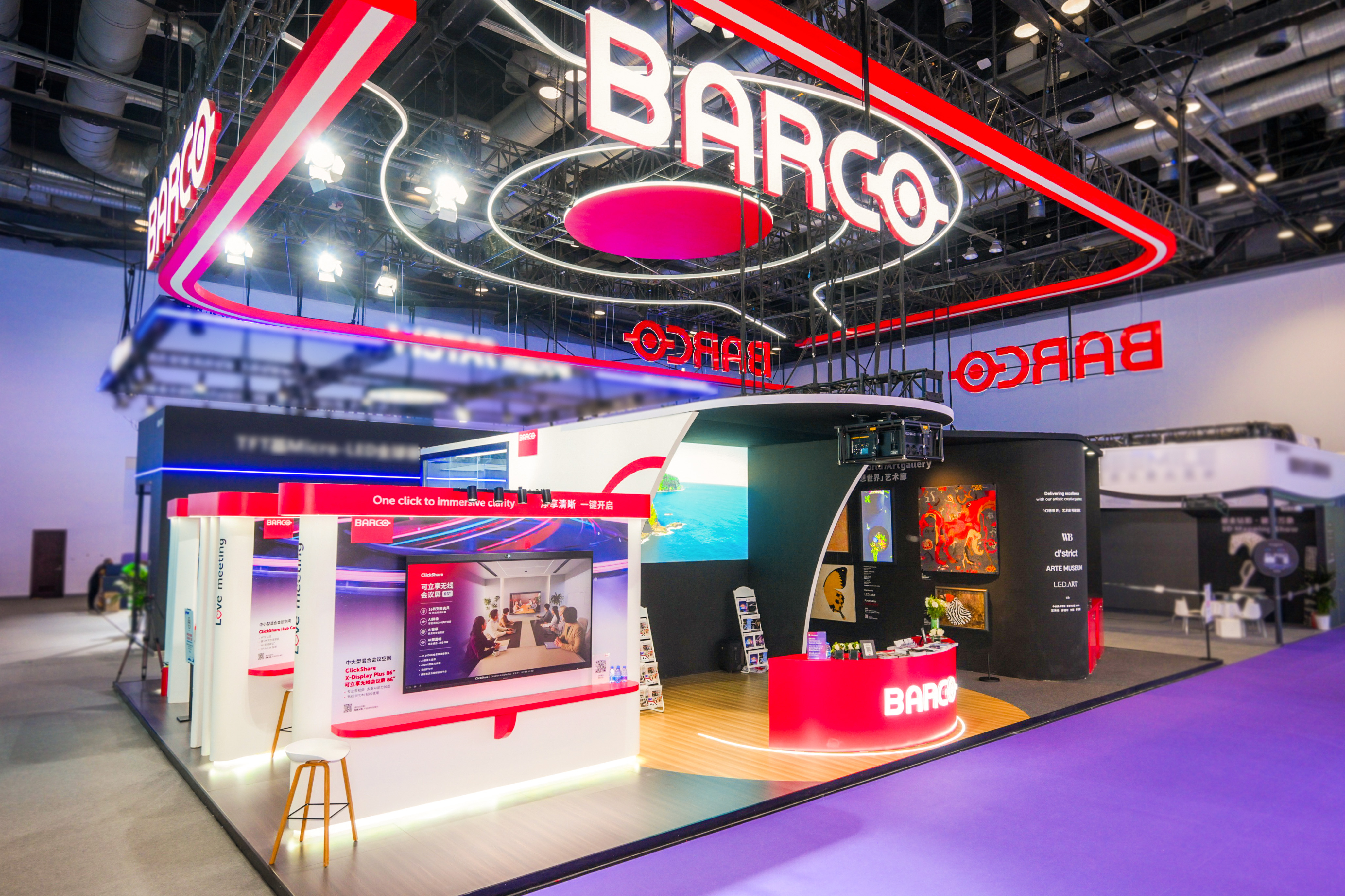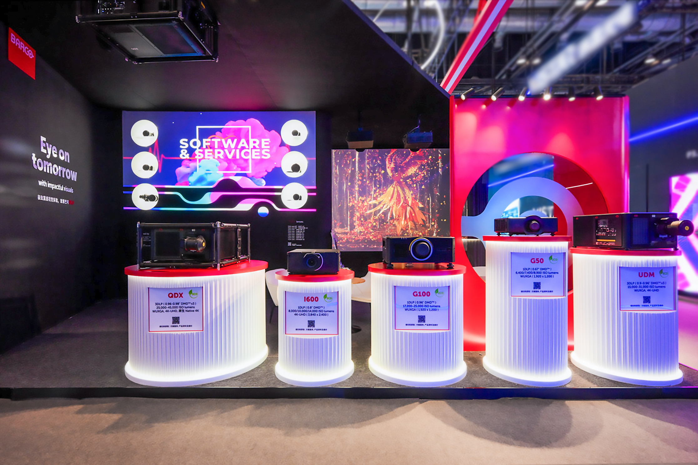 展区全方位呈现了巴可在高端投影技术、专业图像处理及细分市场应用的完整布局。