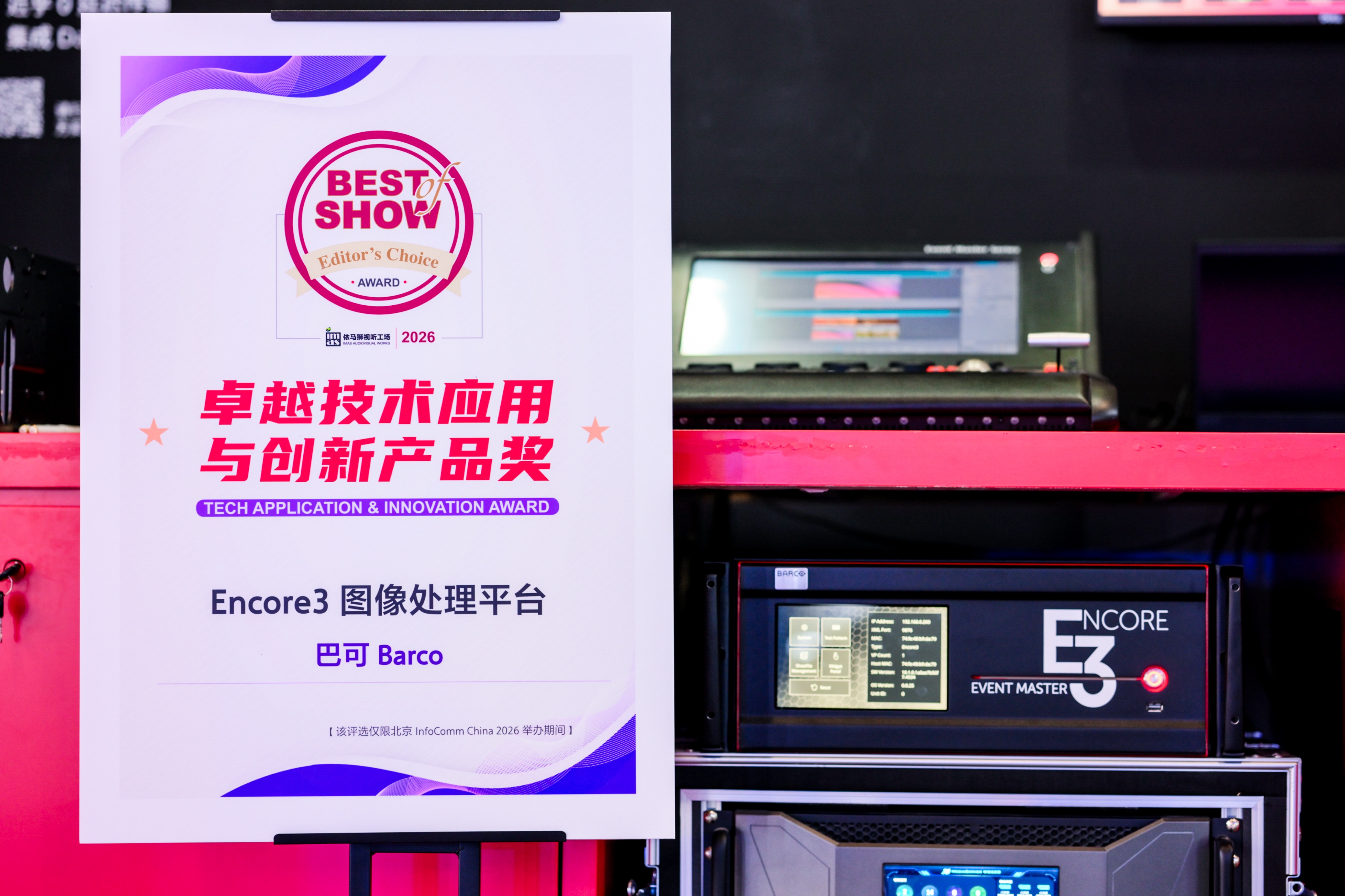 展会期间,巴可荣获本届InfoComm China 2026的“Best of Show”奖项。可立享Hub模块化无线视频会议室系统、Encore3图像处理平台两款重磅产品,凭借领先的技术应用与创新性,一举斩获卓越技术应用与创新产品奖。