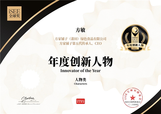 4月15日,备受食品饮料行业瞩目的2026第八届iSEE年度创新奖榜单正式揭晓。方家铺子第五代传承人、CEO方敏凭借“AI+全家滋补”的前瞻性布局,重构中式滋补价值链,引领老字号实现数字化与个性化转型,从众多候选人中脱颖而出,荣获“iSEE年度创新人物”奖项。