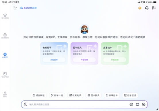 同时,大幅降低了特教服务成本,让中小机构能够以更低成本提供高质量服务,让更多特需家庭“上得起学、做得起康复”。这种普惠化的变革,让特教行业不再是少数人的“奢侈品”,而是成为千万特需家庭的“必需品”。