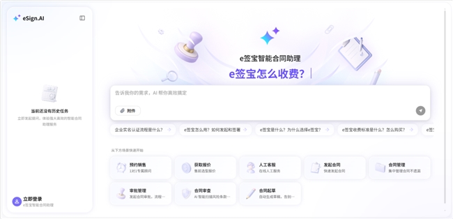相较于传统电子签产品,eSign.AI的升级亮点集中在三大方面:在品牌定位上,进一步强化AI基因,聚焦AI电子签、AI合同Agent、AI法律服务三大核心赛道,全方位覆盖企业在AI时代的签署与合同管理需求;在产品能力上,升级电子合同AI垂直大模型,优化智能合同Agent交互体验,接入电子合同全流程Skill,实现用户行为全场景AI覆盖,用户可通过自然语言随时随地发起签署指令,大幅提升合同起草、审核、签署、归档的全流程效率;在生态兼容上,实现与OpenClaw等主流AI平台的无缝对接,企业无需重构现有业务系统,即可快速接入AI签署能力,最大限度保护既有技术投入,降低数字化转型成本。