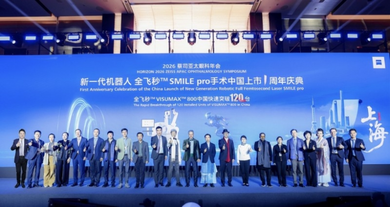2026年4月18日-19日,蔡司亚太眼科学术峰会(HORIZON 2026)在上海隆重召开。会上正式宣布:新一代机器人全飞秒™ VISUMAX 800在中国上市满一周年,全国装机量突破120台,手术量超80000例,以“中国速度”书写屈光手术高质量发展新篇章。