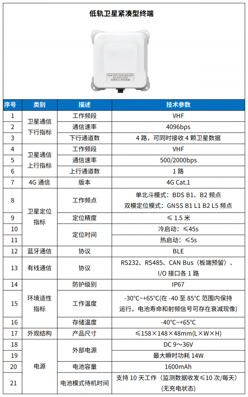 本产品是一款具备低轨卫星通信能力的紧凑型终端。