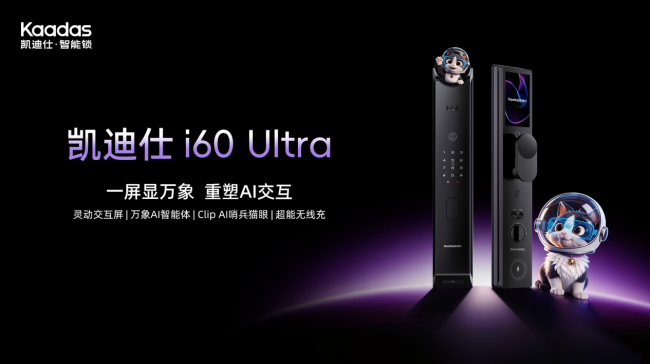 近日,高端智能锁品牌Kaadas凯迪仕正式推出新品 ——凯迪仕 i60 Ultra AI 智能锁,以 “一屏显万象” 为核心设计理念,融合灵动交互屏、万象 AI 智能体、Clip AI 哨兵猫眼系统、超能无线充四大核心技术,重构智能门锁 AI 交互与家庭安防体验,为用户带来更安全、更便捷、更有温度的智慧入户解决方案。