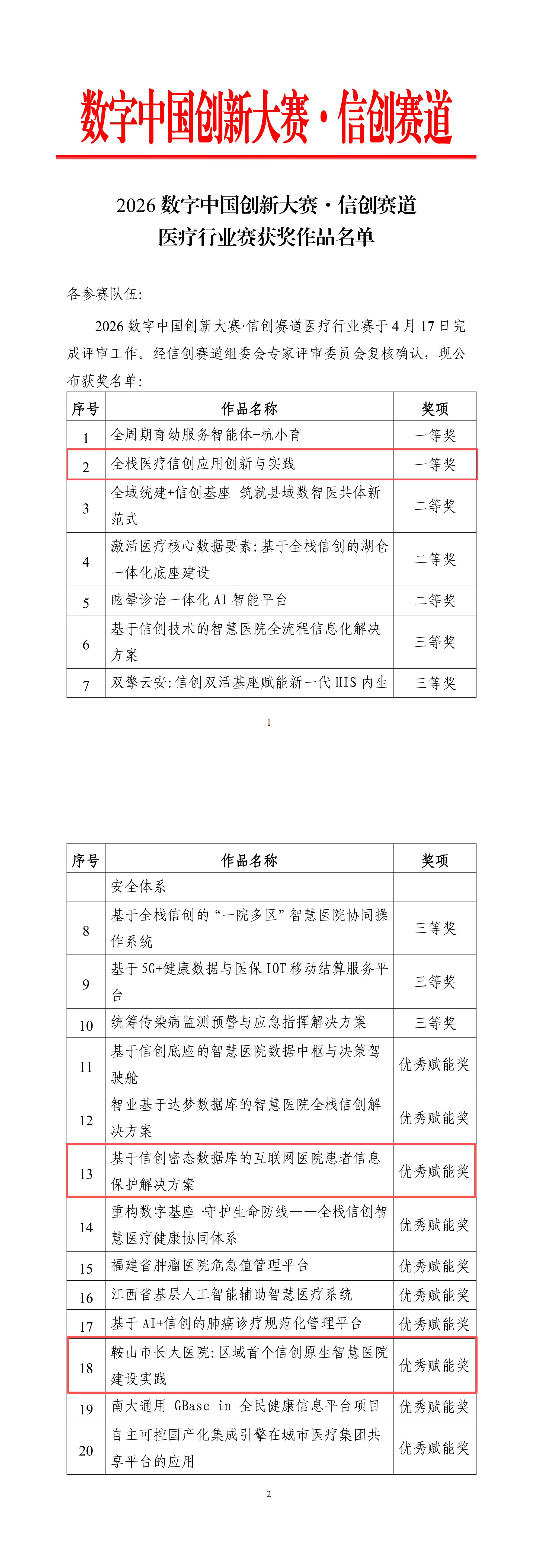 一等奖 |全栈医疗信创应用创新与实践
