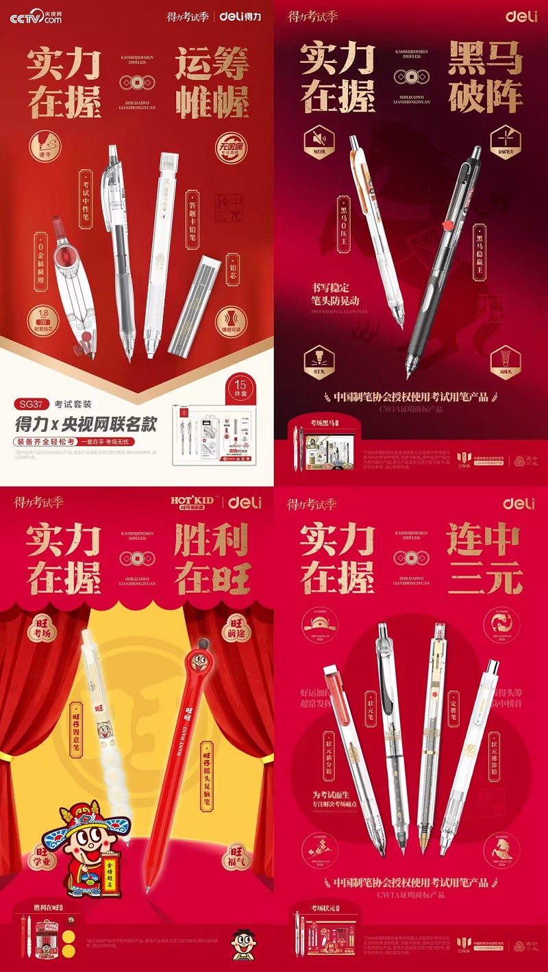 作为中国第一文具品牌,得力始终以解决用户痛点为核心,深耕考试品类研发多年。2026 考试季,得力重磅推出四大系列考试产品,全方位覆盖不同考生需求:15年口碑爆款“连中三元”系列,以经典品质陪伴一代又一代学子;旺旺联名系列,以趣味解压设计为考生注入情绪价值;“黑马”系列,以专业质感硬核配置,打造备考安心之选;本次全新上市的央视网联名套装,依托权威背书,以大国品质铸就满分底气。多层次产品矩阵,推动考试文具从单一工具向“功能+体验”的综合解决方案升级。