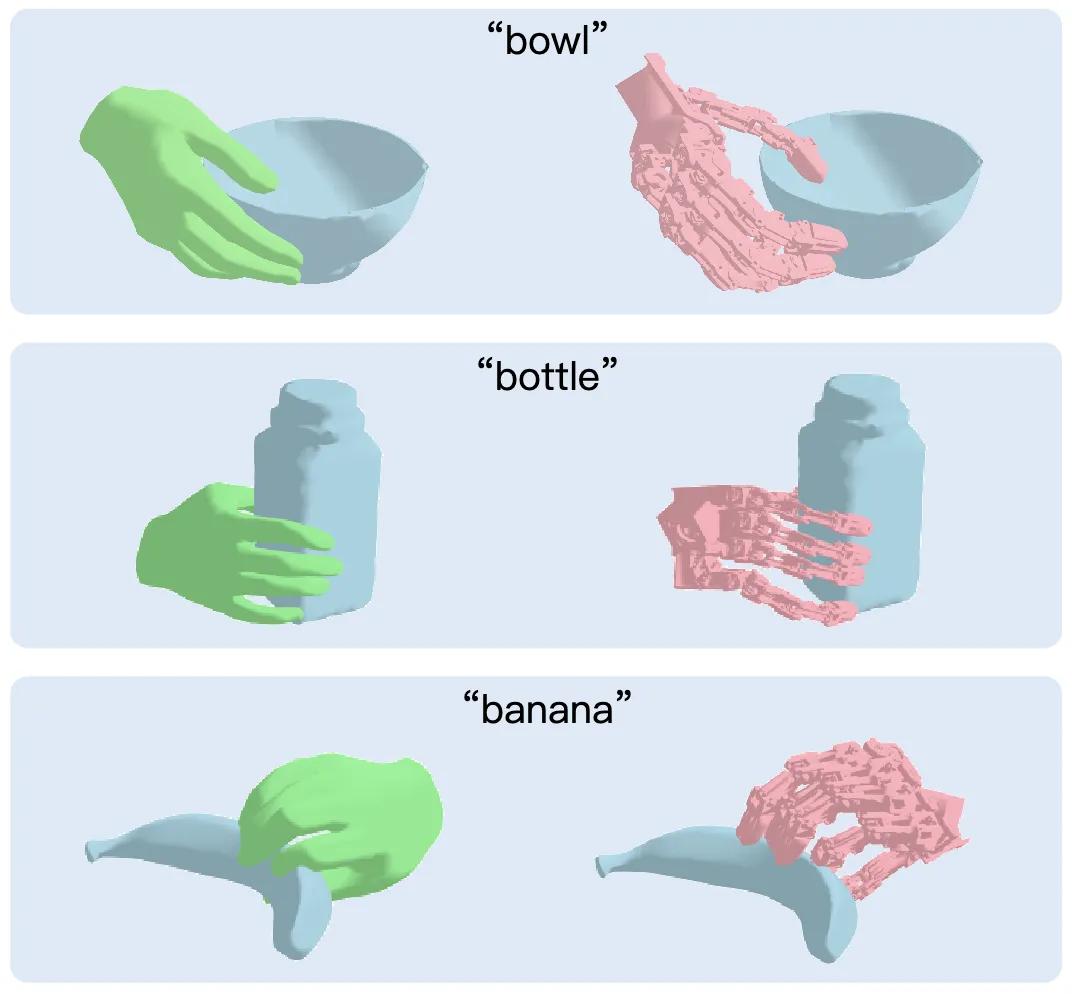浙江人形打造了高效率的人类行为数据解析和映射方法,对采用消费级相机采集的人类第一/第三视角数据进行处理,可准确提取出人类的作业顺序、物体掩膜、6D位姿、手势轨迹及手-物接触关系,精度达到毫米级,并通过手势重定向快速映射至高自由度灵巧手,为抓取等技能学习奠定数据基础。