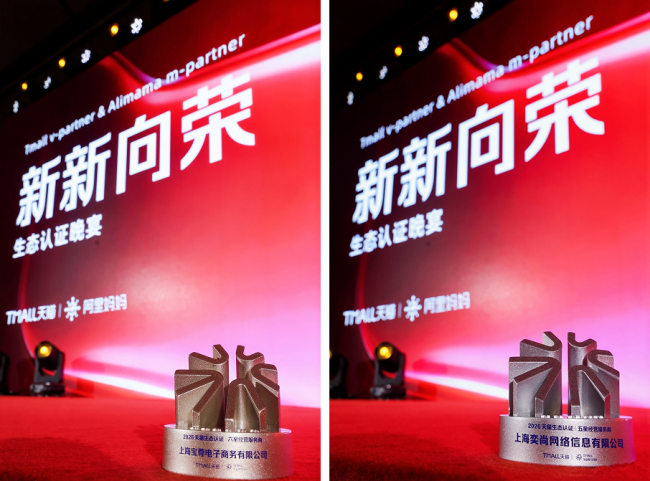 2026年度天猫生态星级评选结果正式出炉,行业头部数字商业服务商宝尊电商,凭借成熟完善的全域全链路服务体系、领先行业的数字化技术实力,以及长期稳定的高品质服务表现,成功守住天猫六星经营服务商荣誉。旗下上海奕尚网络信息有限公司同步获评天猫五星经营服务商,双重荣誉加持,既是行业平台对宝尊综合服务能力的高度认可,也充分印证其在品牌数字化服务领域的领先优势与核心竞争力。