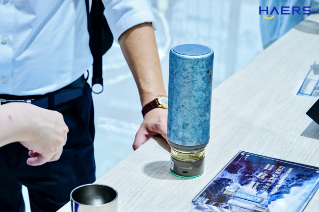 本次展会上,哈尔斯重点展出了多款智能水杯,纯钛系列毫无悬念地成为全场焦点。