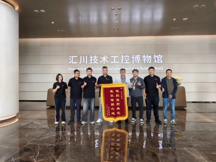 ▲ 戴乐团队向汇川赠送"电控品质典范、戴乐信赖之选"锦旗