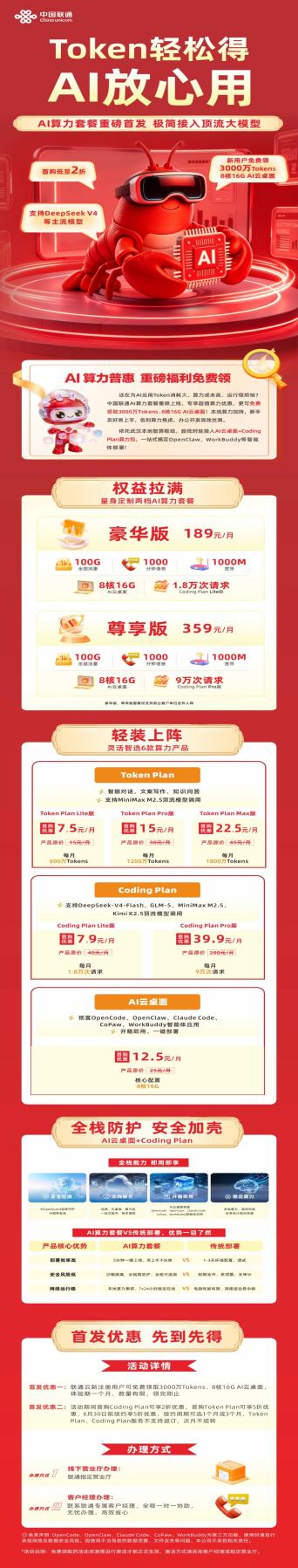这套“顶流模型+最强搭子+普惠算力”的组合为限量发售,在中国联通湖北线下营业厅首发,机会难得,手慢无——即刻锁定,让你用最轻的Token消耗,撬动最猛的智能产出!