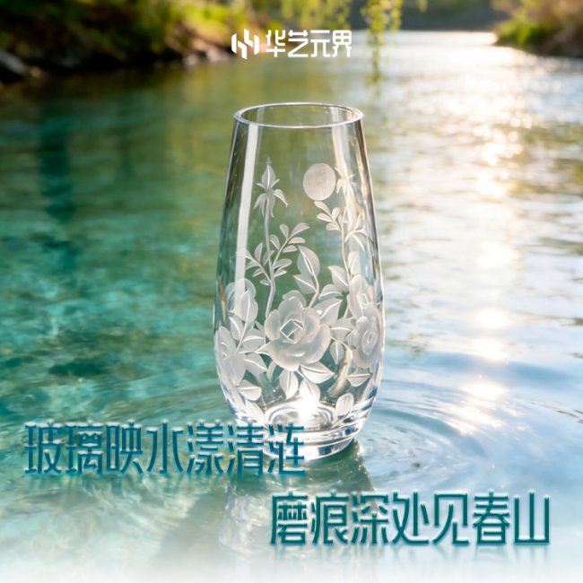 同时,《春色》也是非遗技艺当代转化的典范。张春林老师深耕玻璃画三十载,将传统平面磨刻拓展至立体器物创作,在坚守手工温度的基础上,以实用化、生活化的表达重构非遗传播路径。这款立体磨刻花瓶,让百年玻璃画技艺走出平面挂画,真正融入当代生活空间。