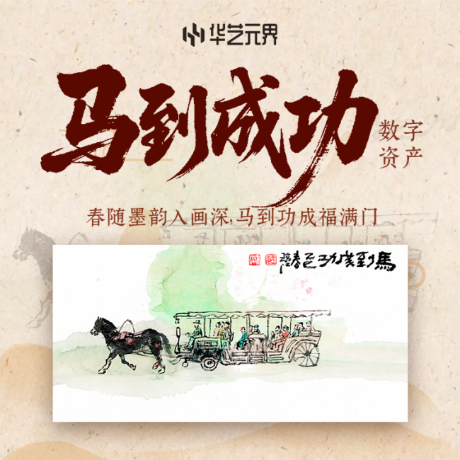 此件数字藏品《马到成功》,是魏瑞江老师 “水墨五大道” 系列佳作,以市井风物承载传统吉语,堪称系列中的代表性小品,亦收录于本次主题明信片系列。作品以明快灵动的笔墨,既写尽城市生活意趣,又深契大众文化心理,实现双重意蕴的诗意表达。