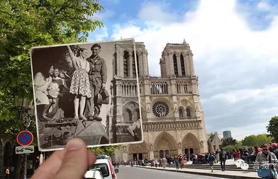 在巴黎圣母院门前,一群游客排队等着瞻仰这座著名的哥特式建筑。在同样的位置,纳粹的狙击手站过,解放巴黎的坦克也碾过。我们都知道“物是人非”什么意思,不过这位巴黎女孩把这四个字拍出来了。